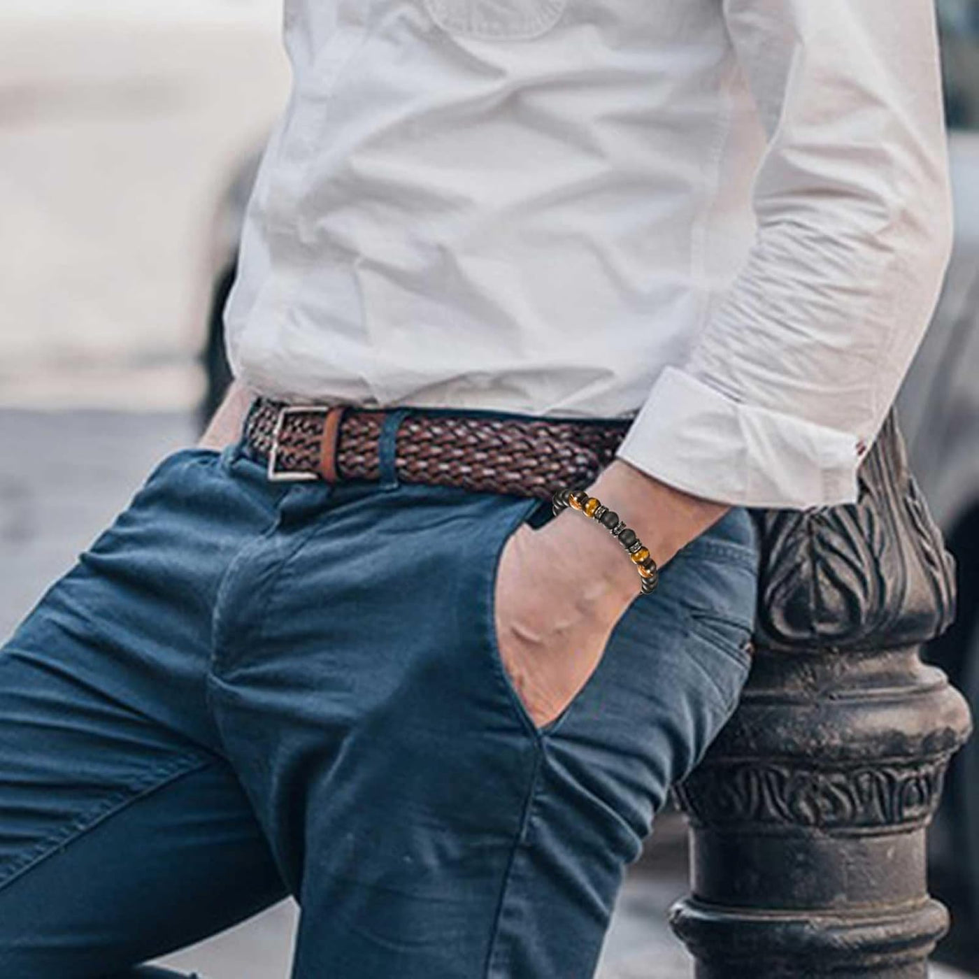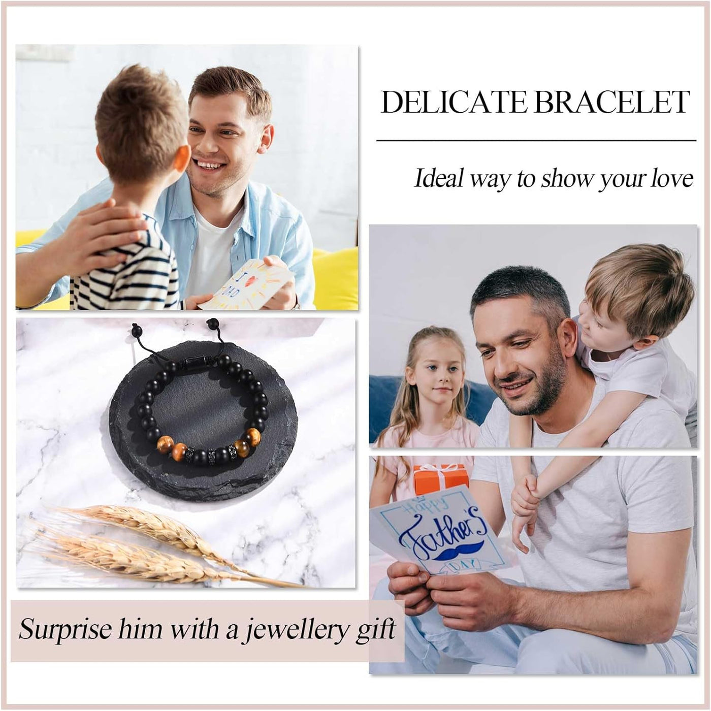 TEVOP Gifts for Dad Son Grandson Grandad Daddy, Tiger Eye Stone Bracelet Adjustable Bracelet Gifts from Daughter Mum Grandparents, Perfect Birthday Graduation Christmas Presents