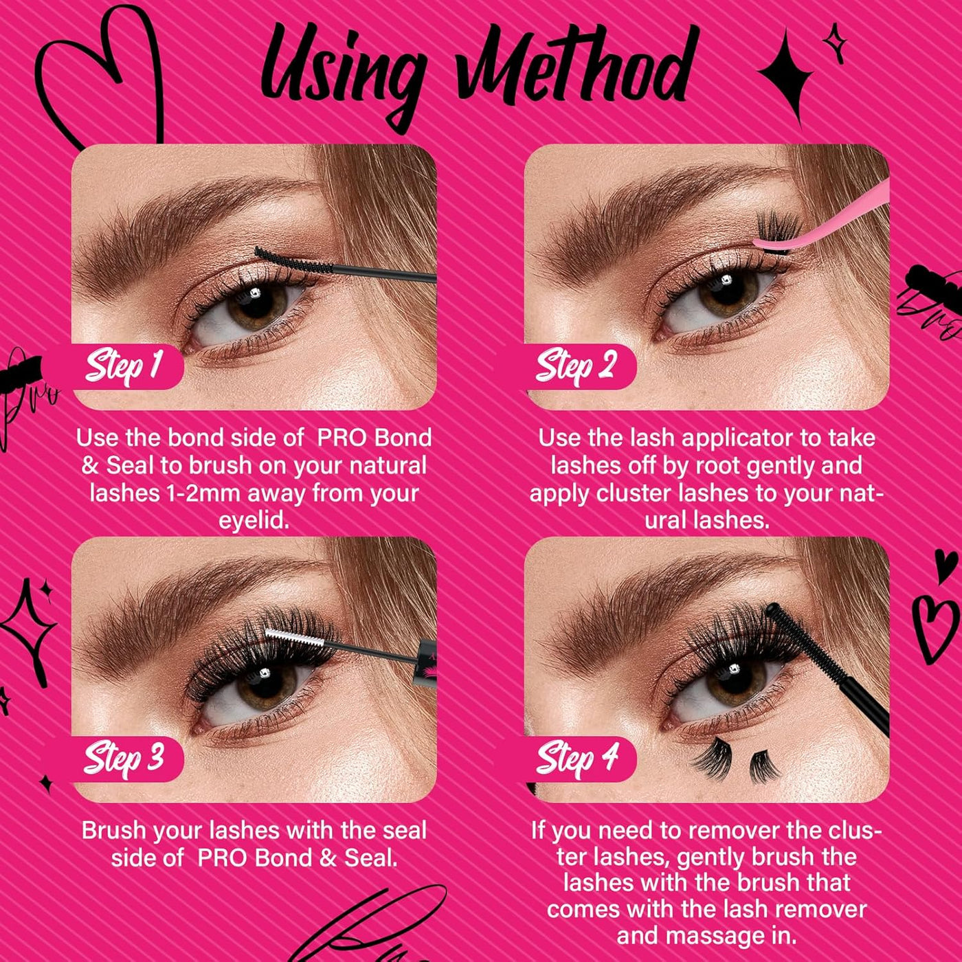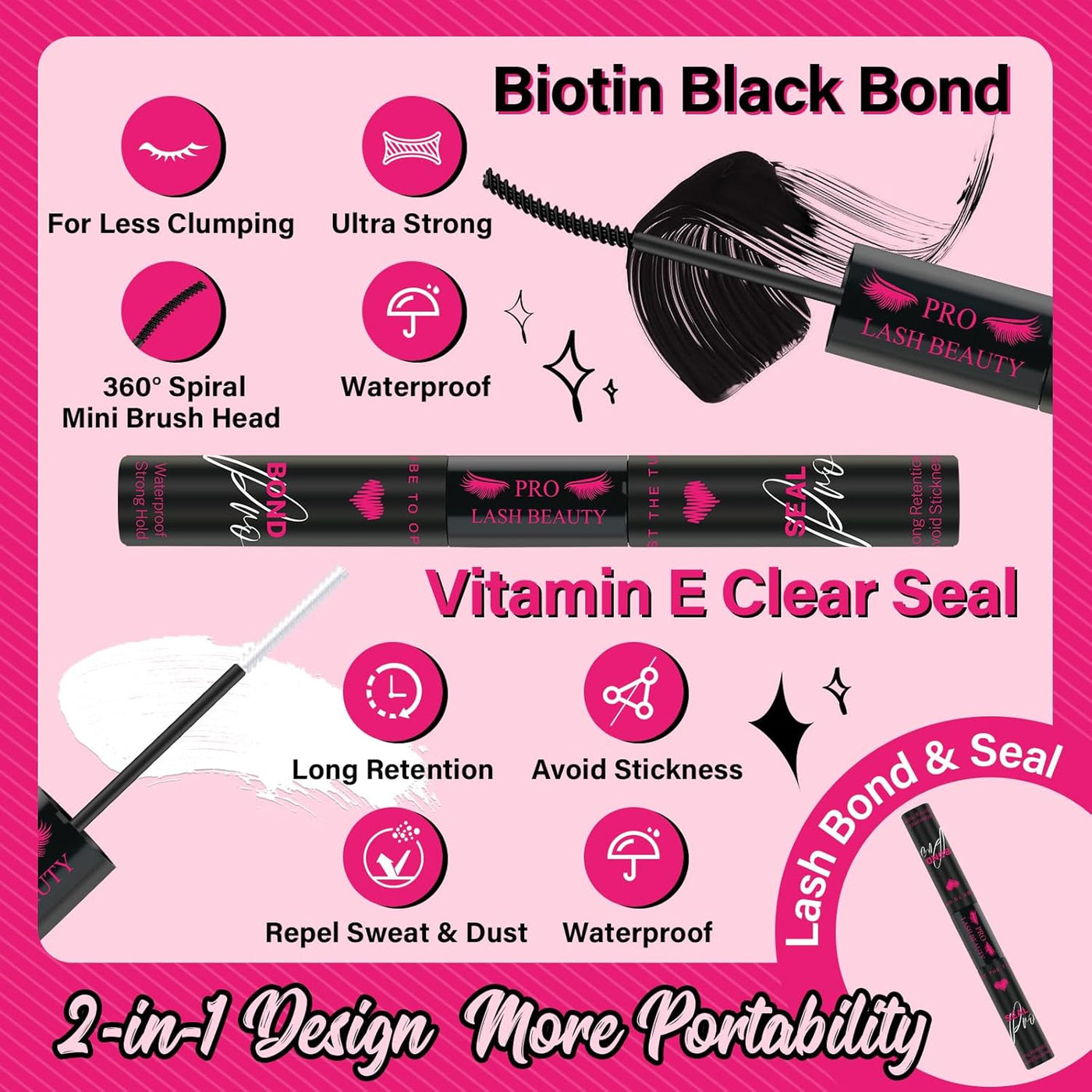 Double sides double functions: PRO Lash Bond (5ml) and Seal (5ml) combine 2 steps into 1 tube. Glue your cluster lashes and longer the retention till 48 Hours