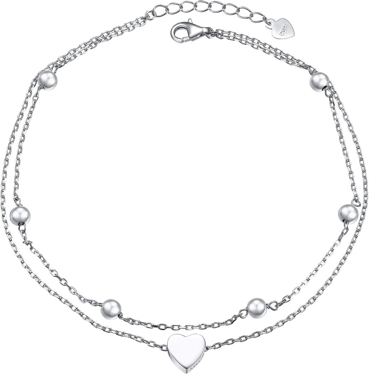 - Heart charm beaded anklet bracelet was made of pure S925 sterling silver, dainty but much more durable and strong than other material.